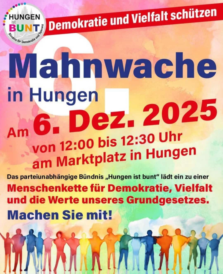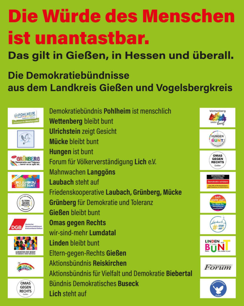 Auch in Hungen stehen wir gemeinsam für Toleranz, Respekt und Solidarität als grundlegende Werte unseres Grundgesetzes.